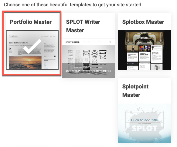 - Go to https://trubox.ca/wp-signup.php and clone the template required by your instructor making sure to click on the thumbnail image below the template name. Make sure there is a white check mark on the thumbnail image before proceeding. (See the example below, but select the template your instructor has required).