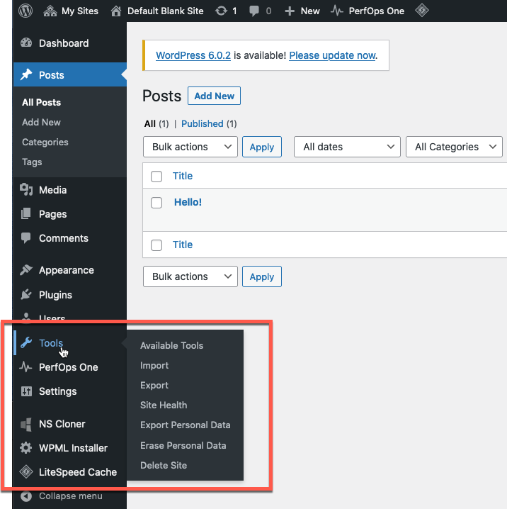 - Delete this site. You can do this in the admin panel for this site, in the Tools menu item and the Delete Site submenu item.
